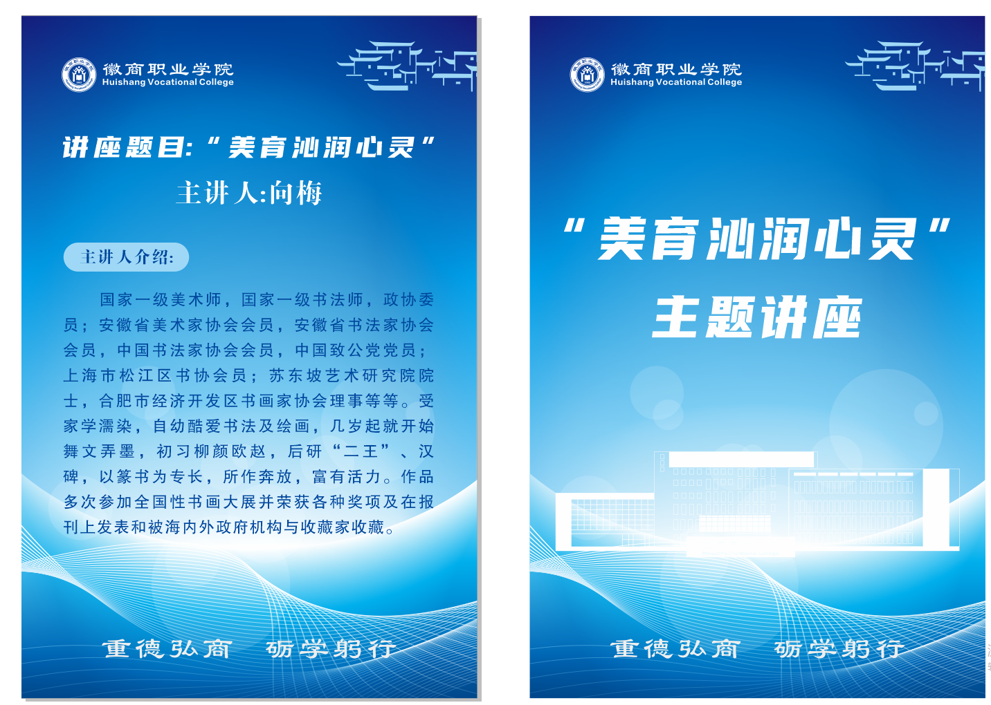 2025年11月11日15:50分,公共教学部在徽商职业学院槽郢校区大礼堂开展《美育浸润心灵》知识讲座,另在2号教学楼一楼打进举办画展活动,请同学们积极前往观赏,。