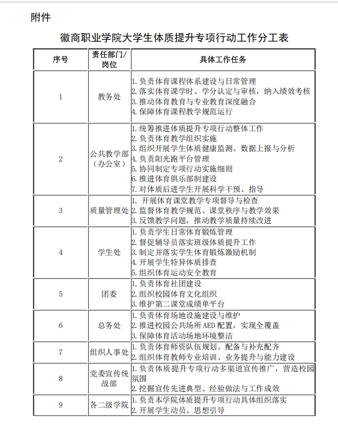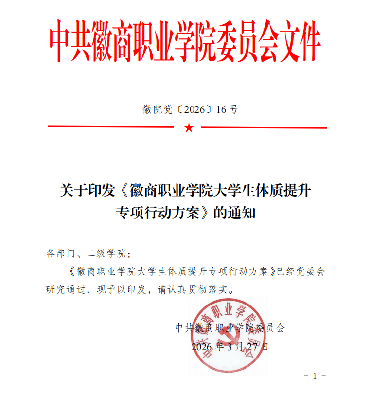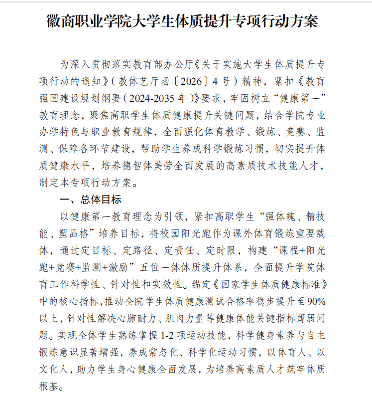 关于印发《徽商职业学院大学生体质提升专项行动方案》的通知